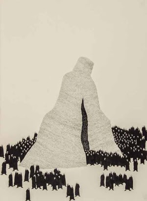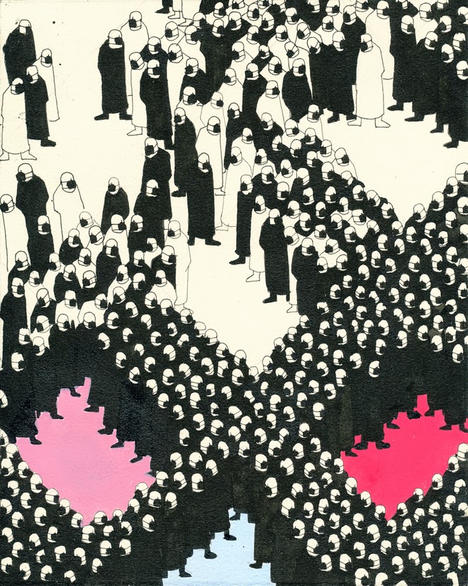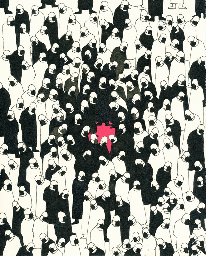 "Flood" Pen and gouache on paper 10" x 8" on paper